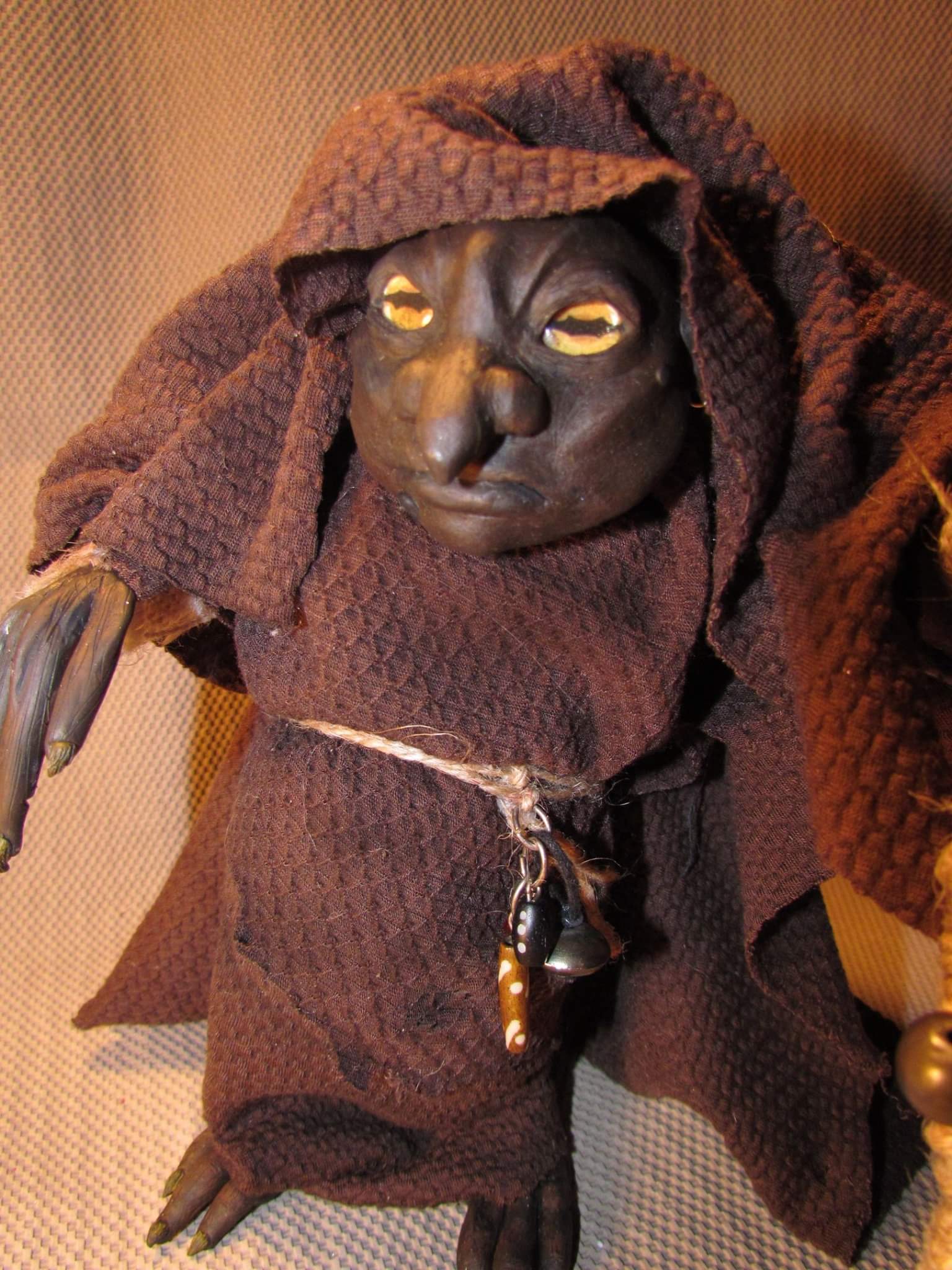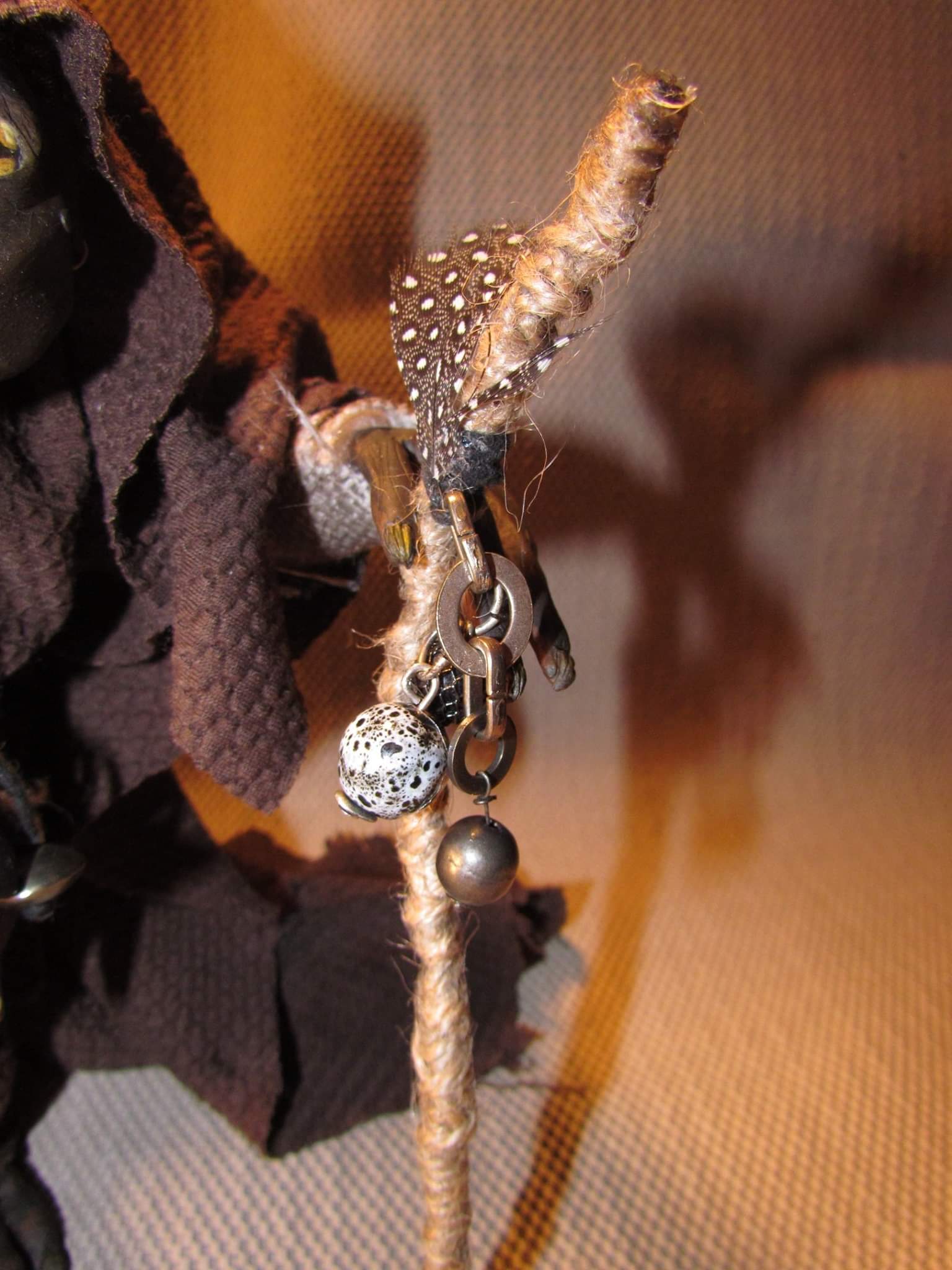 His staff bears the memory of these exchanges. Each charm marks a crossing endured, a direction chosen, a moment when turning back was no longer possible.