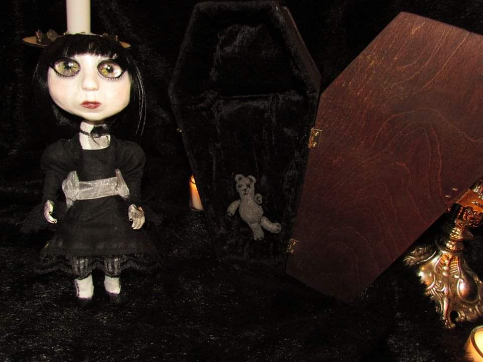 She was sealed away instead—laid to rest in velvet-lined wood, candlelight, and whispered rites meant to preserve restraint rather than end life. Turned young and bound by those who feared both her hunger and her loss, Penny’s coffin was crafted not as a grave, but as a safeguard.