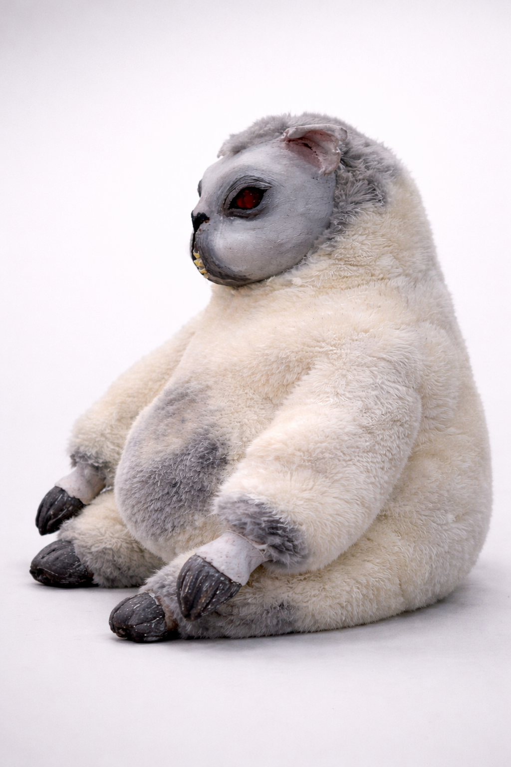 Grindlehog’s form draws from folk-horror traditions and rural mythology, embodying survival shaped by necessity. Every element—from sculpting and painting to textile work and final assembly—has been completed entirely by hand.